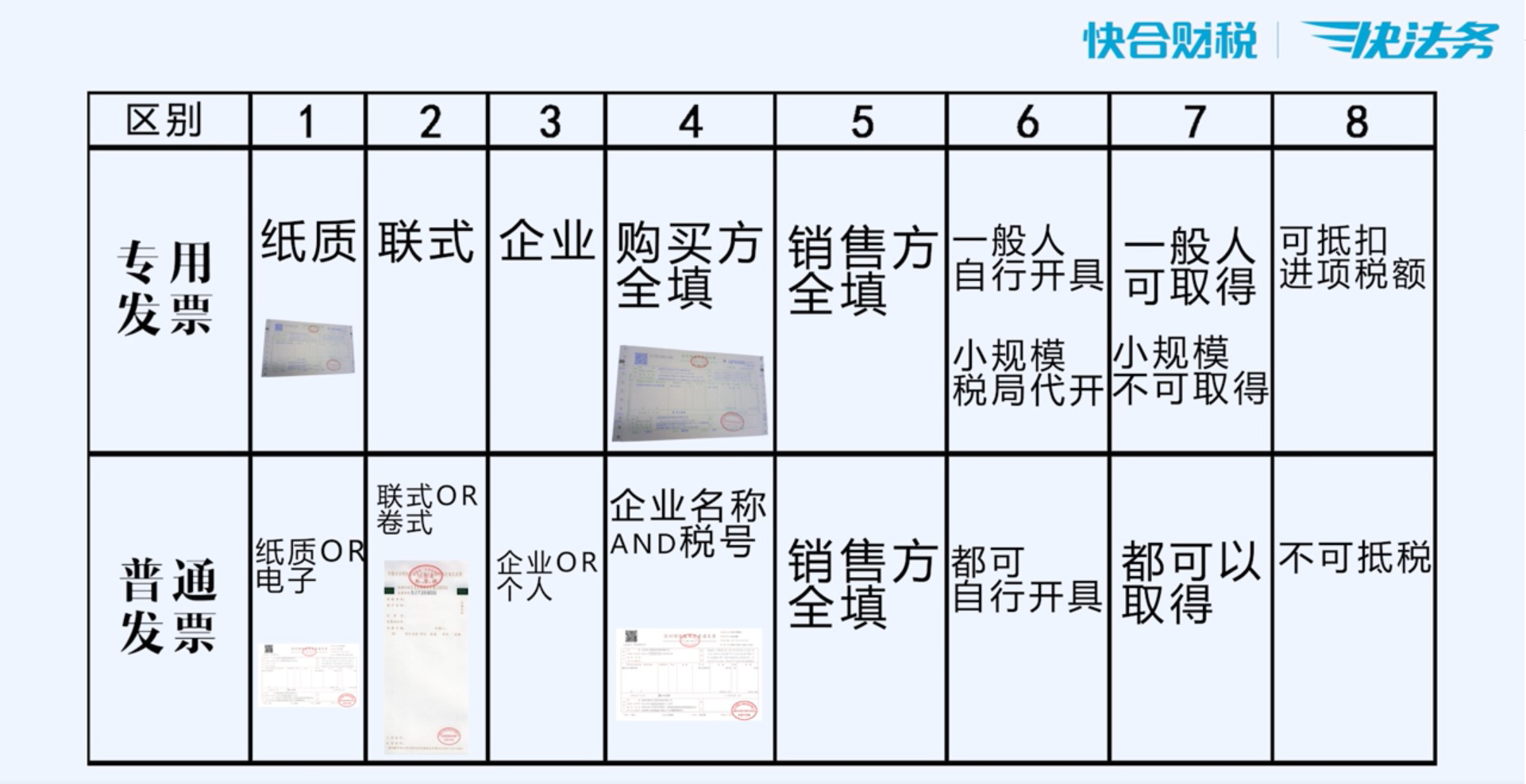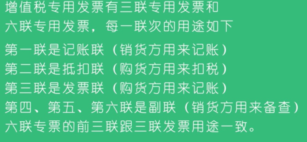 增值税发票: 集销售凭证、记账凭证、报税凭证、抵税凭证、购买凭证等功能为一体的票。 普票(普通发票):由从事经营活动并办理了税务登记的各种纳税人领购使用。是一种商事凭证。消费者为个人或小规模纳税人时、免税商品、未税务登记的个人时需开普票。 专票(专用发票):只能由增值税一般纳税人领购使用。是一种商事凭证,也是一种扣税凭证。劳务行为时需开专票。 发票填写项:购货单位、销货单位、收款人、复核、开票人、密码区、税务合计